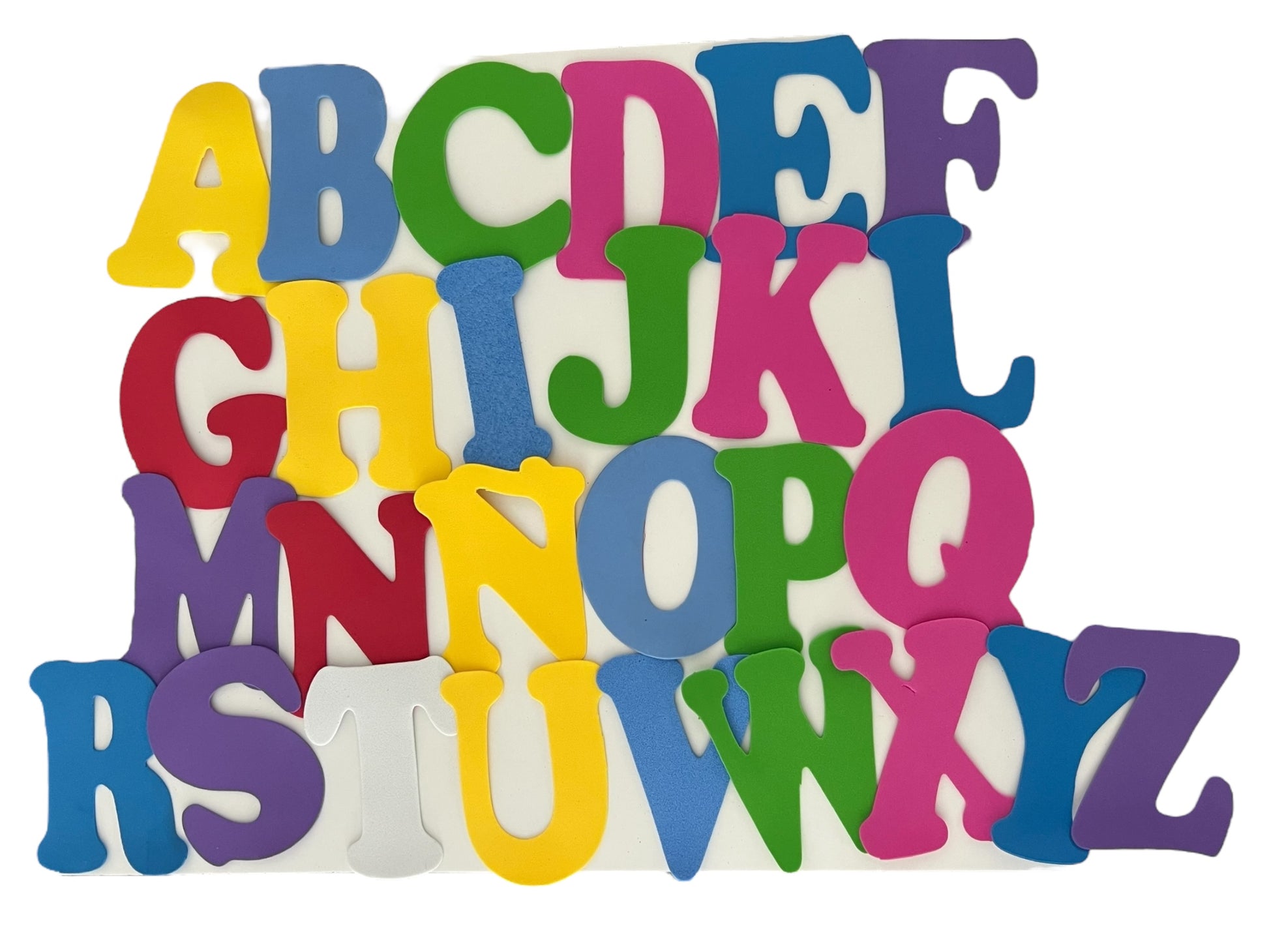 Cada letra está elaborada en foamy resistente, lista para pegar o colgar, y disponible en colores vibrantes que captan la atención de los niños.