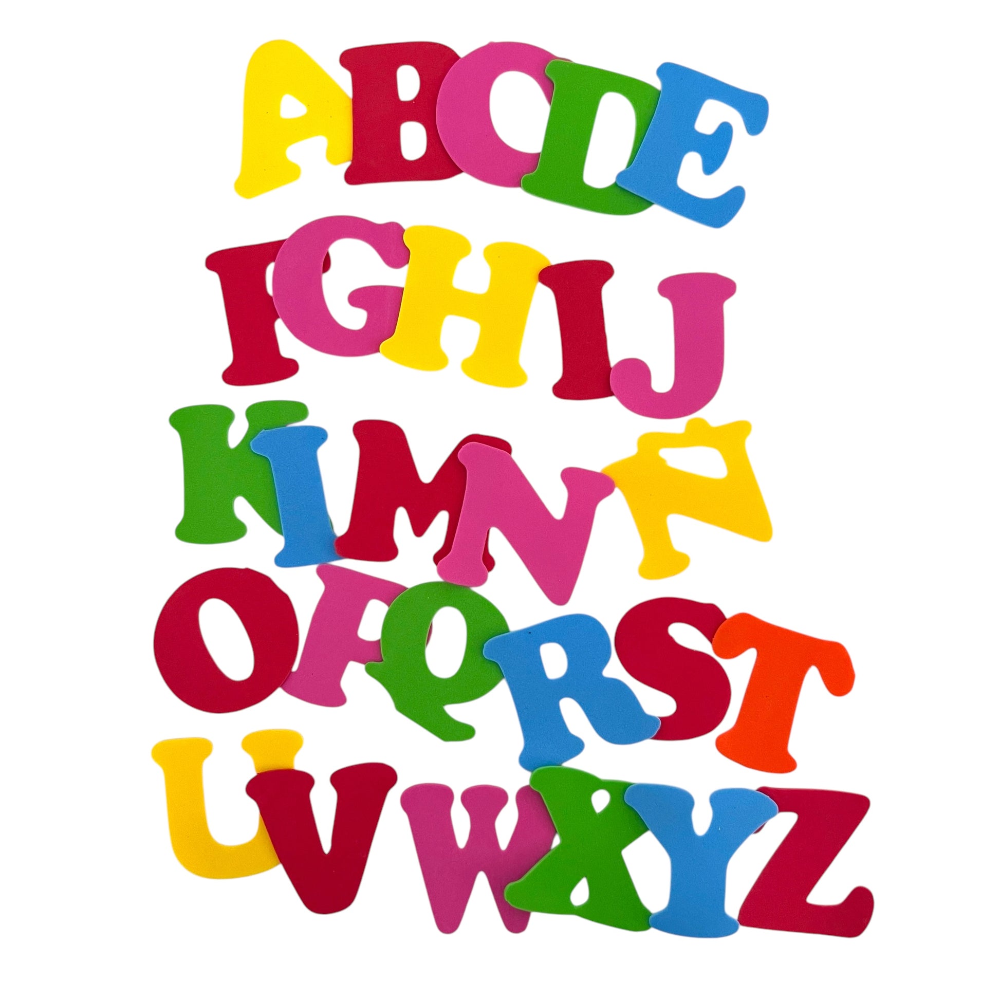 Cada letra está elaborada en foamy resistente, lista para pegar o colgar, y disponible en colores vibrantes que captan la atención de los niños.